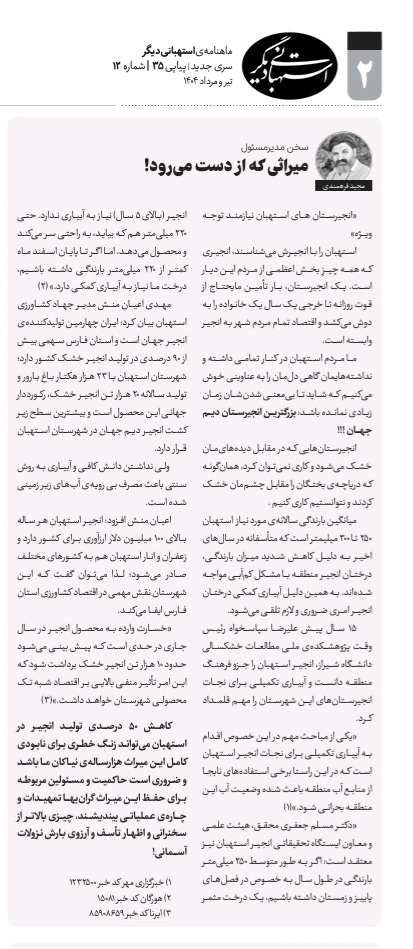 سپاسخواه یکی از مباحث مهم در این خصوص اقدام به آبیاری تکمیلی برای نجات انجیر استهبان است که در این راستا برخی استفاده های نابجا از منابع آب منطقه باعث شده وضعیت آب این منطقه بحرانی شود.(۱)